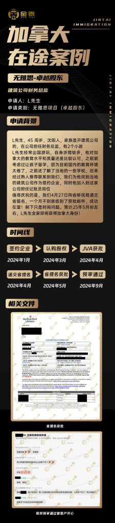 By 金泰移民 06/06/2025 Success Stories Newfoundland No IELTS Excellence Shareholder - Director of Finance, Construction Company Tags:Canadian Cases