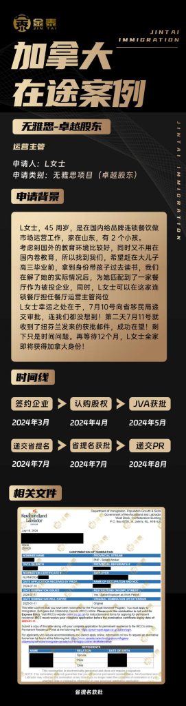 By 金泰移民 06/06/2025 Success Stories Newfoundland No IELTS Excellence Shareholder - Head of Operations Tags:Canadian Cases